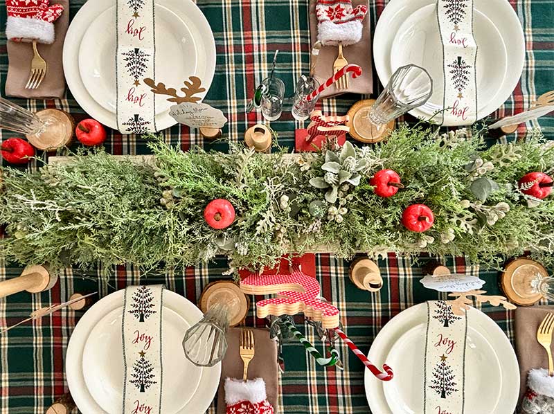 ユーモラスなトナカイパンをイメージして、赤や緑を使ったベーシックでにぎやかなクリスマスに。