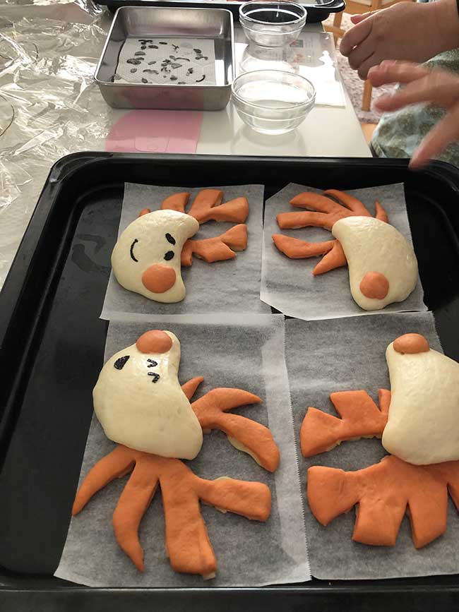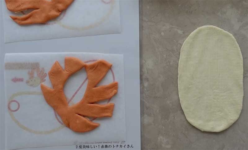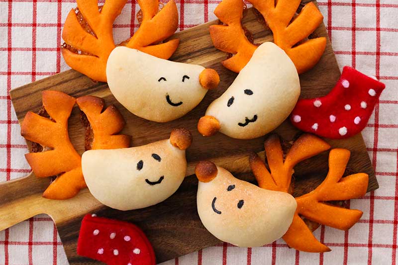 トマト味の生地はトナカイさんの角に、プレーンの生地はお顔になります。