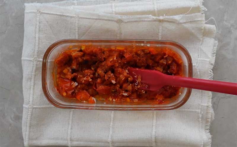 発酵の合間に電子レンジで気軽にできるフィリングを作ります。