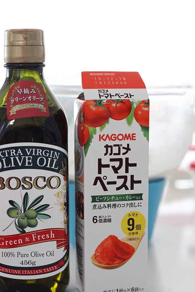 カルツォーネをイメージしておりまして、オリーブオイルとトマトペーストを生地に入れていきますよ♪