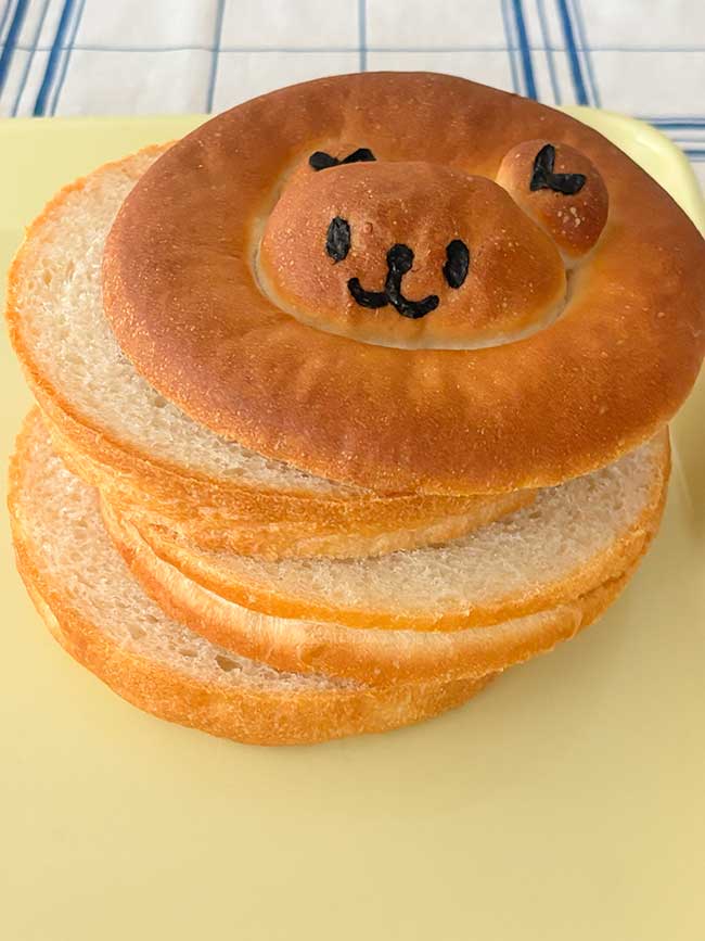 *以前作った丸くま食パンとは生地が違います♪ 今回のバージョンは牛乳入りで焼き色が濃い目。